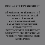 • DEKLARATË E PËRBASHKËT – NË MBËSHTETJE TË PARIMIT TË NDARJES SË PUSHTETEVE,TË FUNDIT TË MITIT TË PANDËSHKUESHMËRISË, PAVARËSISË SË DREJTËSISË, INTEGRITETIT TË INSTITUCIONEVE DHE HETIMIT OBJEKTIV TË ÇDO FUNKSIONARI PUBLIK TË PËRFSHIRË NË AKTE KORRUPTIVE
