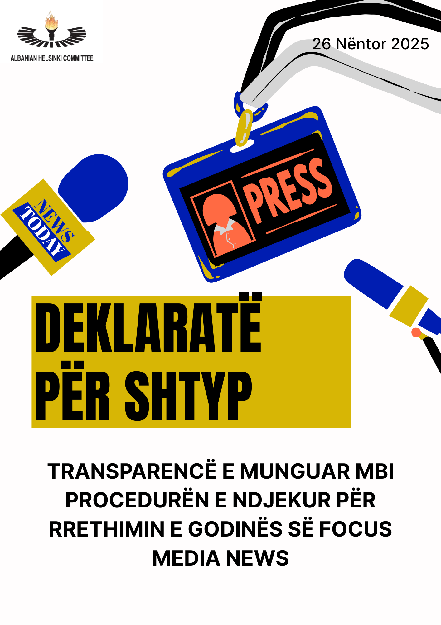 Komiteti Shqiptar i Helsinkit (KShH) në përmbushje të misionit të tij për mbrojtjen e të drejtave dhe lirive themelore u njoh nga publikimet në media si dhe u informua nga shoqëria “Focus Media News” mbi ngjarjen e datës 09.08.2025, ku ambientet e kësaj shoqërie mediatike u rrethuan nga forcat e Policisë së Shtetit.